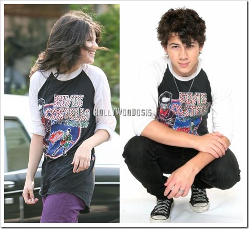 Mientras tanto, Selena Gomez fué fotografiada usando una remera de Elvis Costello, propiedad de Nick – el cual hace un tiempo afirmó que era “uno de sus bienes más preciados”.